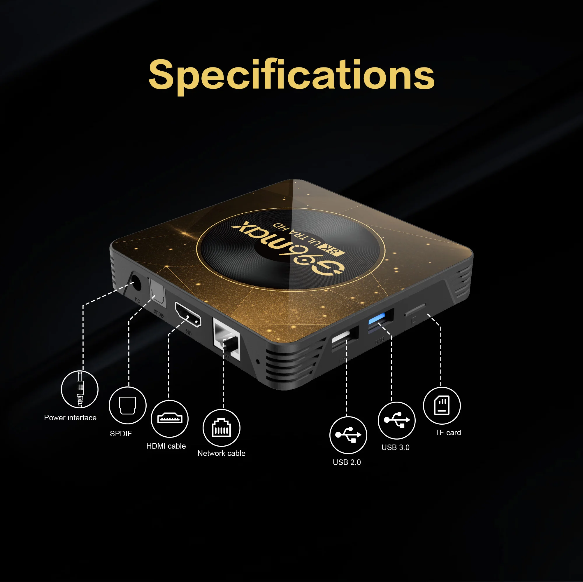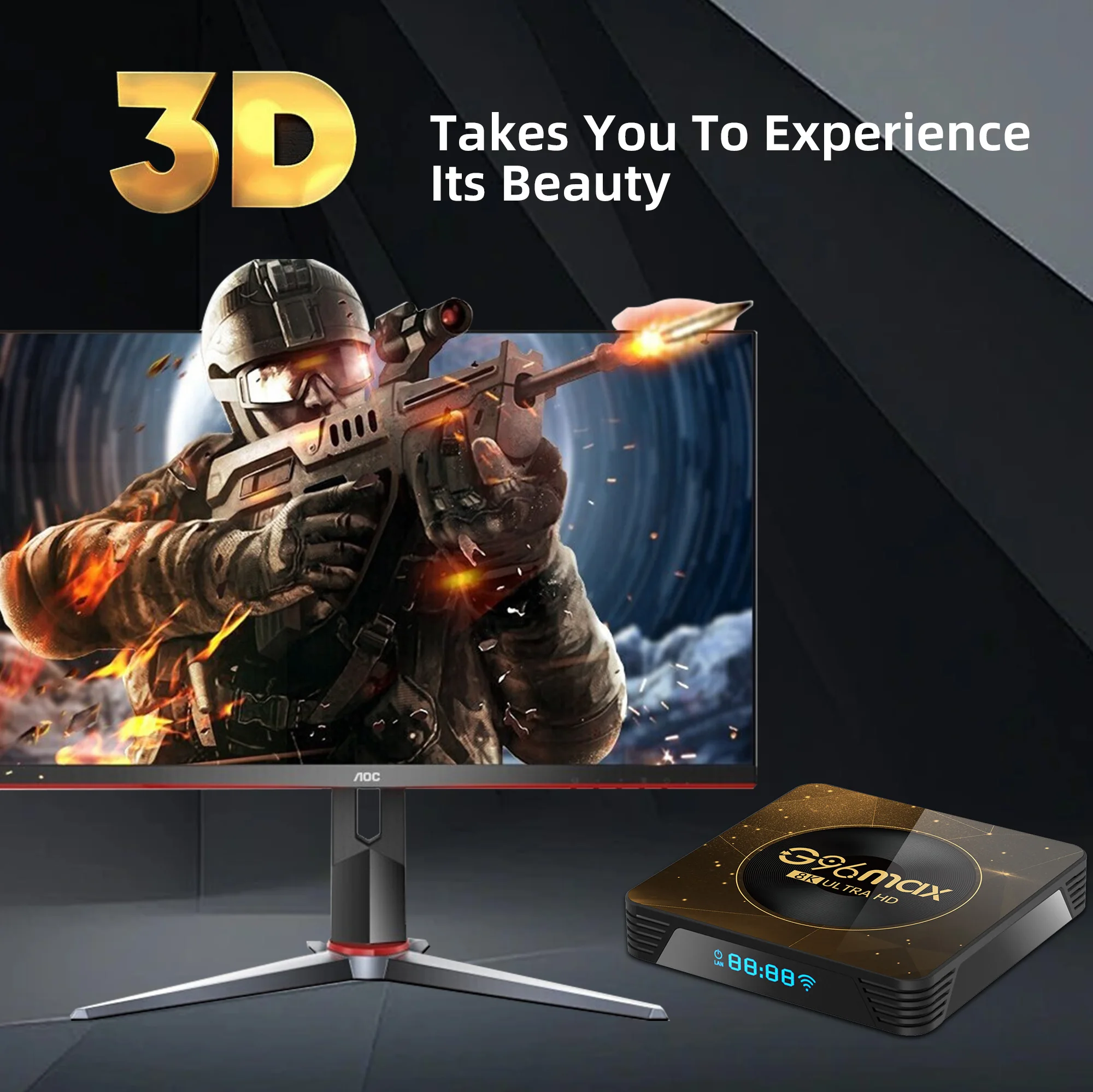 leads the way in image processing. Ensure smooth operation and response. The Android TV box comes with16GB 32GB 64GB 128GB flash memory. You can also use an additional 128GB SD card, and 128GB TF card to expand the memory to the required capacity. It provides plenty of space to install apps, games, and more.
